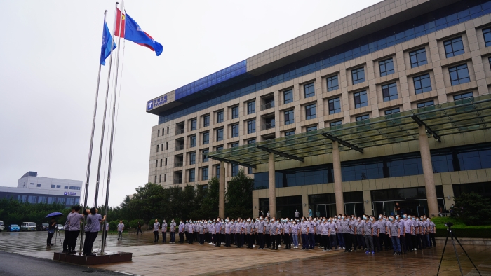 7月1日,为庆祝中国共产党成立101周年,爱体育在线官网(中国)工业党委组织全体中层以上干部、在职党员于办公楼前举行升旗仪式。
